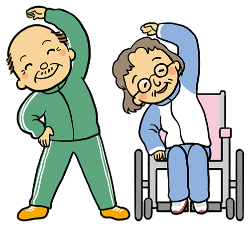 車イスの方もお取り組みいただける簡単な体操で、身体機能の維持・向上を図ります。