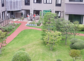 麗しの杜2号館デイサービスセンターでは、少人数でのんびりとお過ごしいただくため、ご利用者様それぞれの生活リズムを大事にしています。お天気の良い日には、広々とした中庭での散歩や、花壇や菜園での土いじりもお楽しみいただけます。